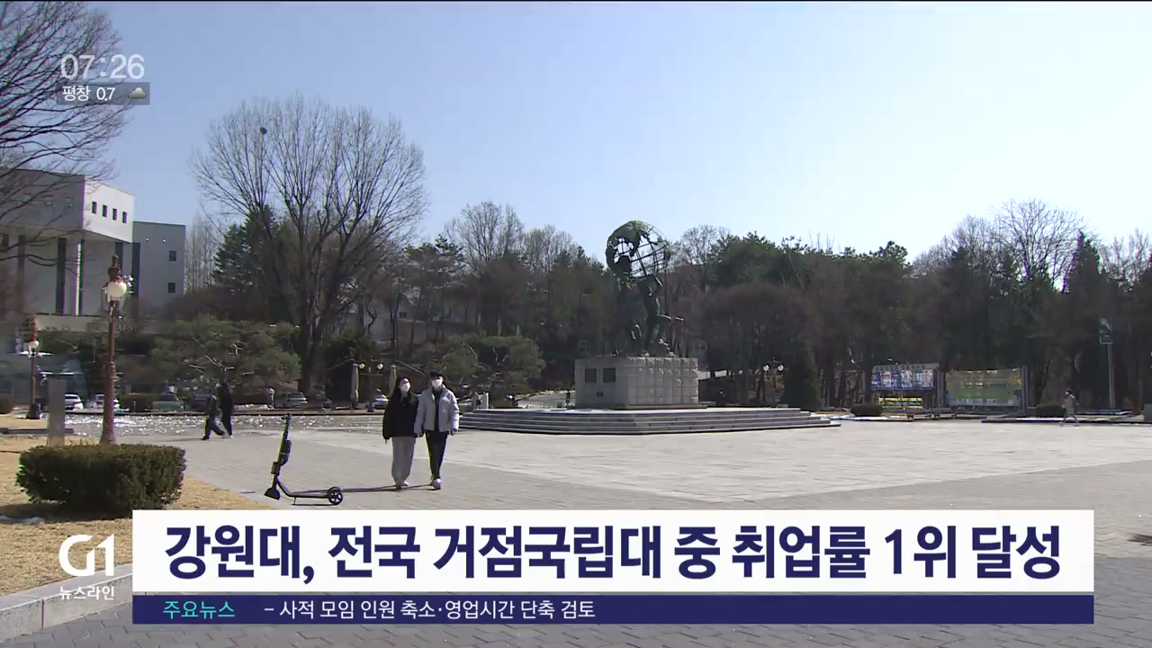 강원대학교가 지난해 기준 취업률 60%를 기록하면서 전국 국가거점국립대학 9곳 중에서 취업률 1위를 달성했습니다.
