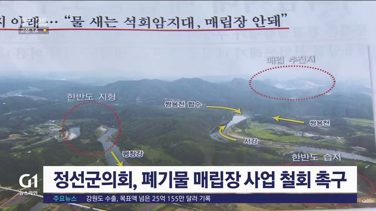 G1 뉴스에서 보도한 정선 폐기물 매립장 조성 계획과 관련해 정선군의회가 반대 결의문을 채택하고 사업 철회를 촉구했습니다.