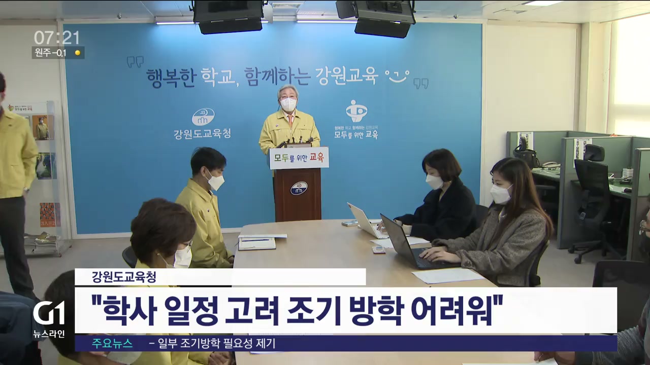 강원도교육청은 기말고사 등 학사 일정을 고려할 때 조기방학은 어렵다는 입장입니다.
