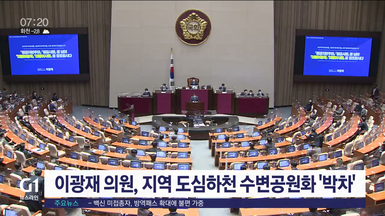 더불어민주당 선대위 미래경제위원장인 이광재 의원은 어제(20일), 주민 삶과 밀접한 지방 도심하천에 수변공원 조성을 지원하는 '하천법 일부개정 법률안'을 대표발의했습니다.