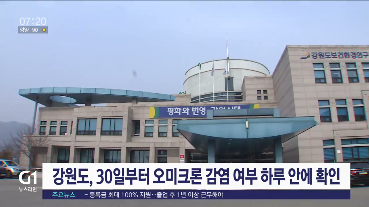 강원도, 30일부터 오미크론 감염 여부 하루 안에 확인