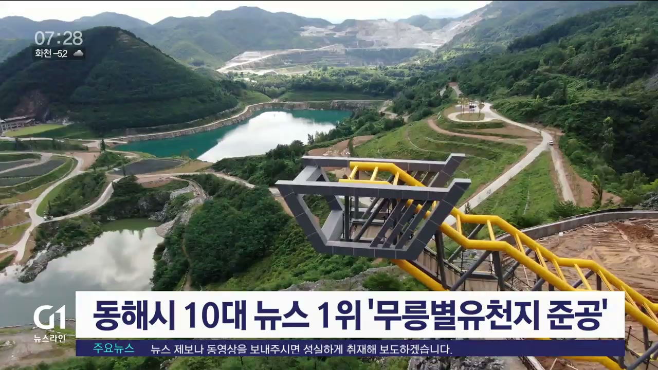 동해시가 올해 10대 뉴스를 선정한 결과 무릉별유천지 1단계 사업 준공이 1위를, 도째비골 스카이 밸리 개장과 망상 오토캠핑리조트 재해복구 공사 완료가 각각 2위와 3위를 차지 했습니다.
