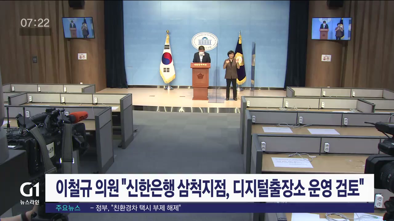 신한은행 본점 관계자는 어제, 이철규 국회의원을 찾아, 신한은행 삼척지점을 창구직원 2명 등 직원 4명과 함께, 디지털데스크와 시니어 ATM 등을 갖춘 디지털출장소로 운영해, 고객 불편을 최소화 하겠다고 밝혔습니다.