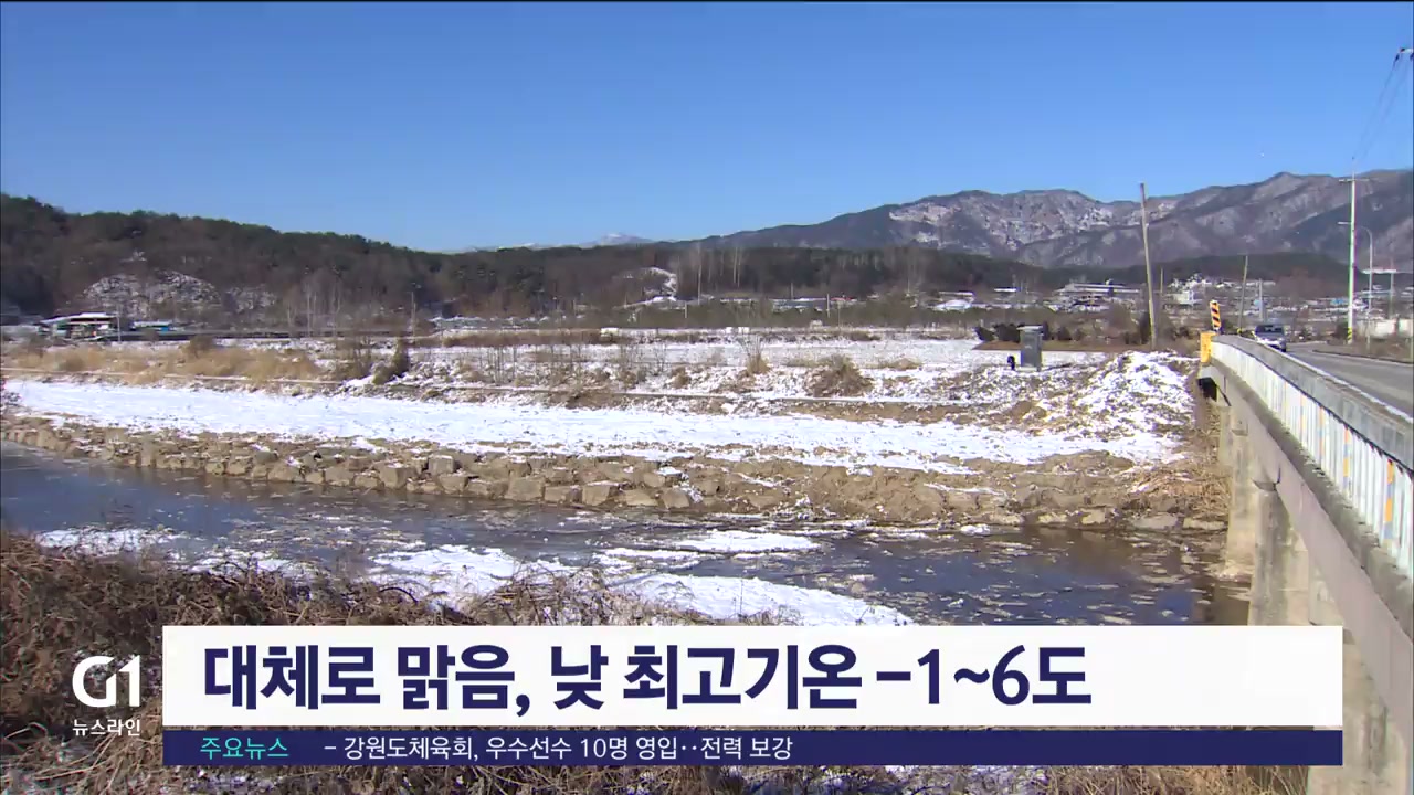 아침 최저기온은 영하 11도에서 0도, 낮 최고기온은 영서지역이 영하 1도에서 4도, 영동지역은 3도에서 6도의 분포를 보이겠습니다.