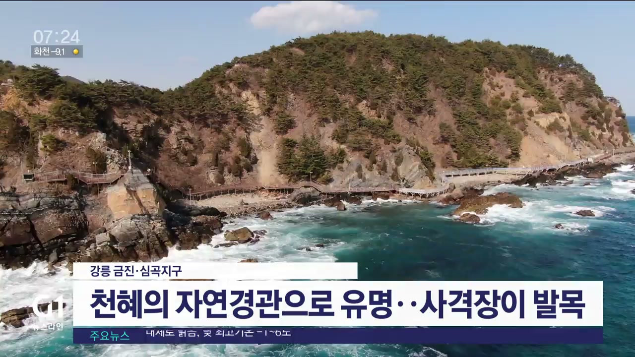 강릉 남부권의 금진·심곡지구는 바다를 따라 국내 최장 해안단구 절벽이 펼쳐져 있습니다.