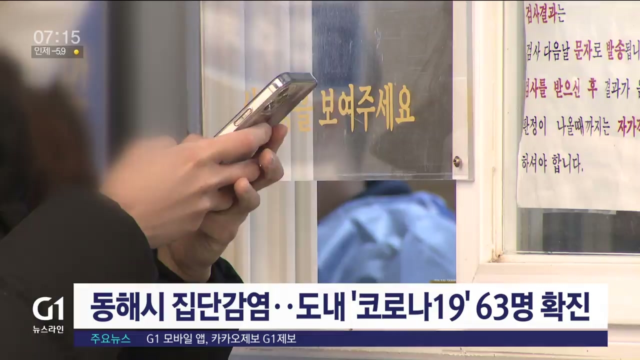 동해시 집단감염‥도내 '코로나19' 63명 확진