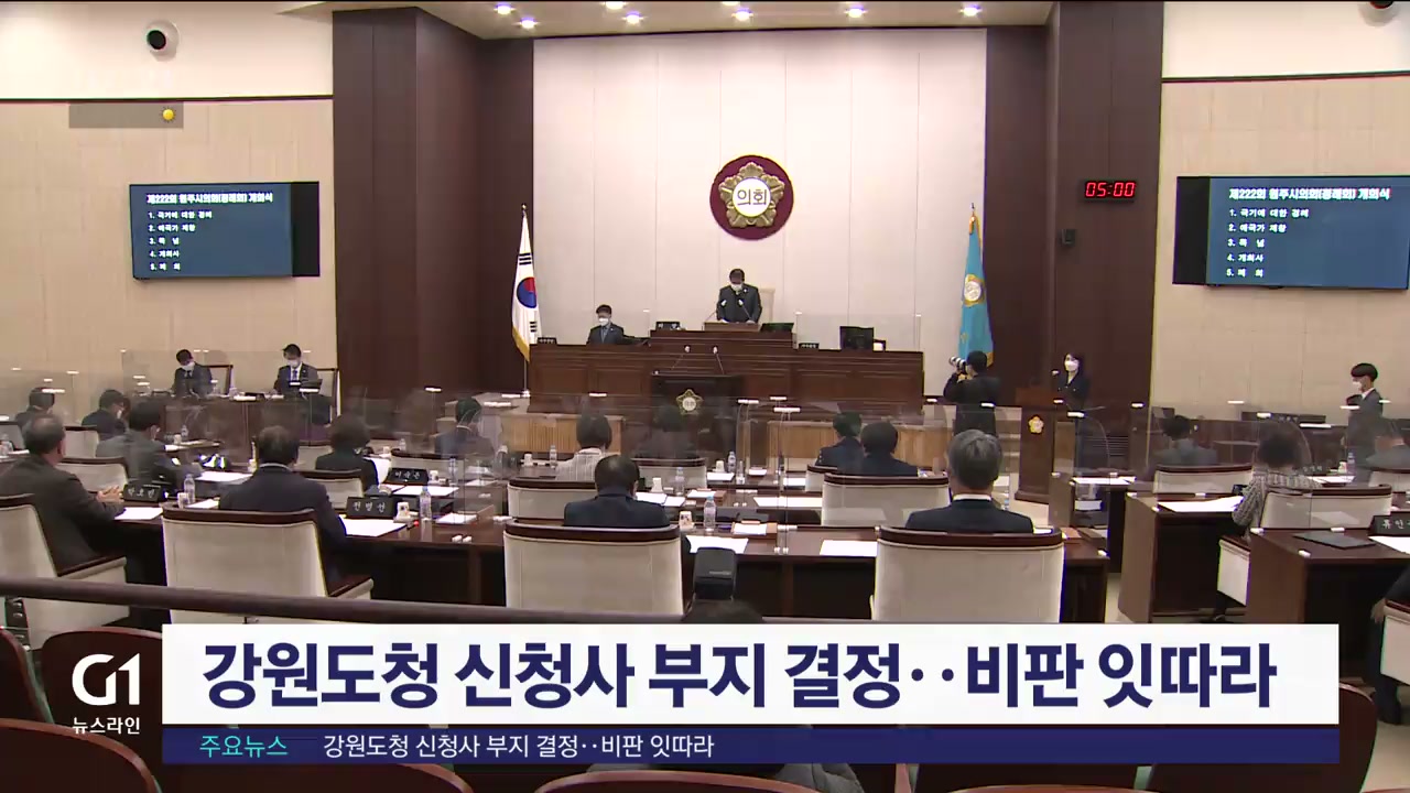 원주시의원 9명은 성명을 내고, "도청은 도민 모두와 직접적으로 관련이 있음에도 어떠한 공론화 과정도 거치지 않고 원칙과 기준 없이 이전을 추진하고 있다"고 비판했습니다.