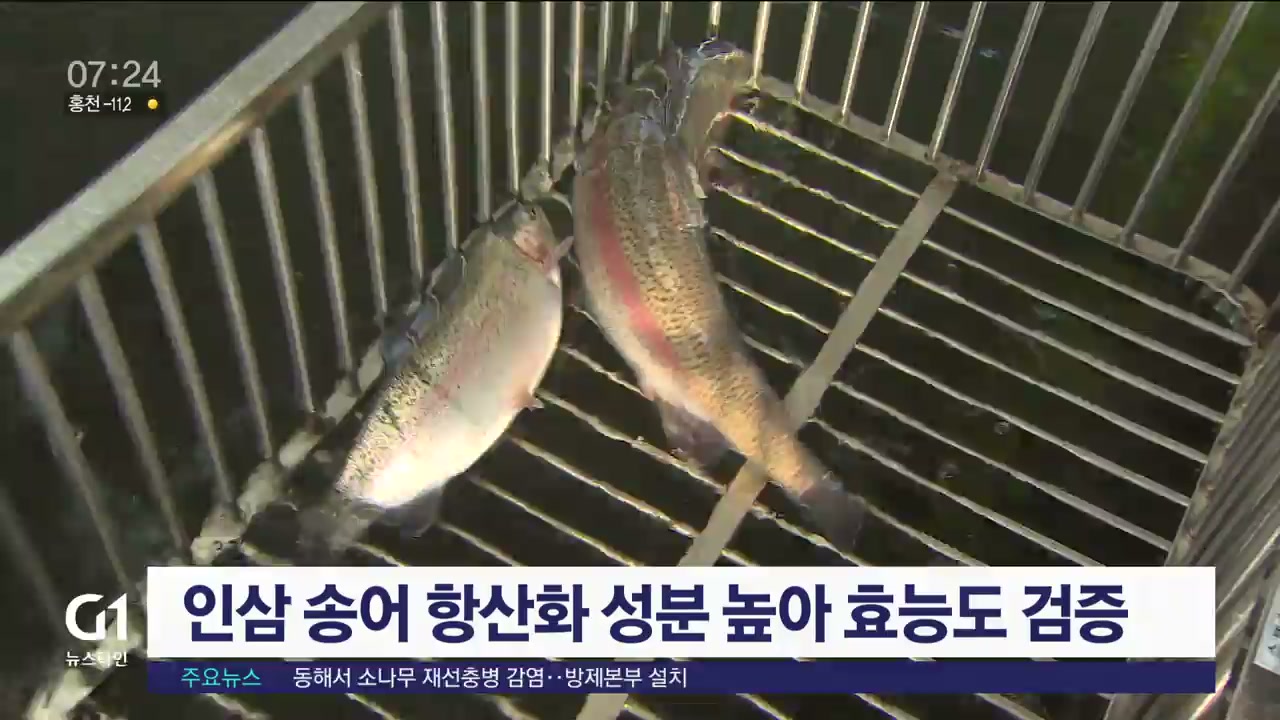 이미 작년 3월부터 6년근 인삼을 사료로 공급해 길이 80cm, 무게 2kg에 달하는 슈퍼 송어 양식에 성공했습니다.