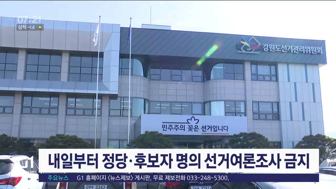 강원도선거관리위원회는 제20대 대선 60일 전인 내일부터 정당이나 후보자 명의로 선거에 관한 여론조사가 금지된다고 밝혔습니다.