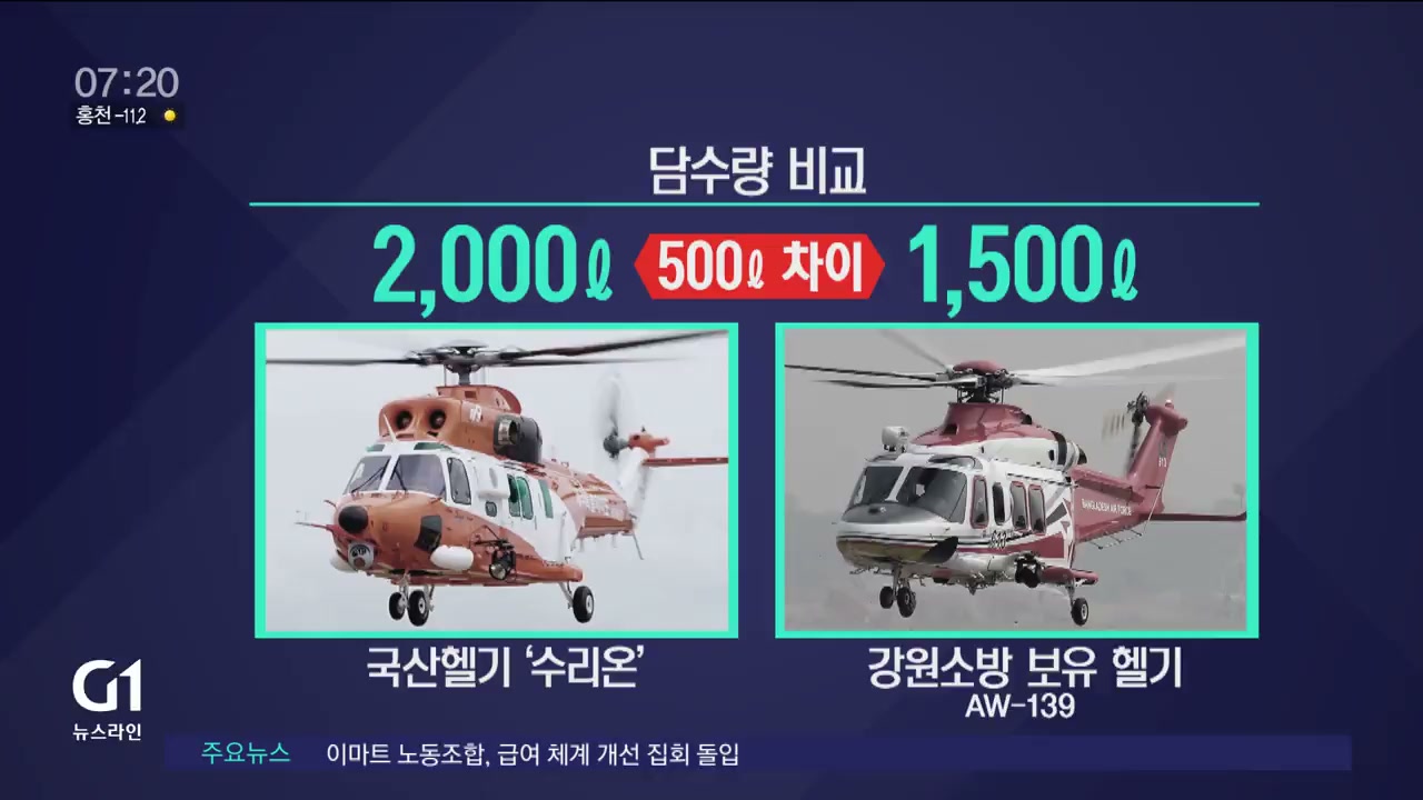 현재 1,500L 규모의 도내 소방헬기와도 5백L밖에 차이가 없어, 대형헬기로 보기 부족합니다./