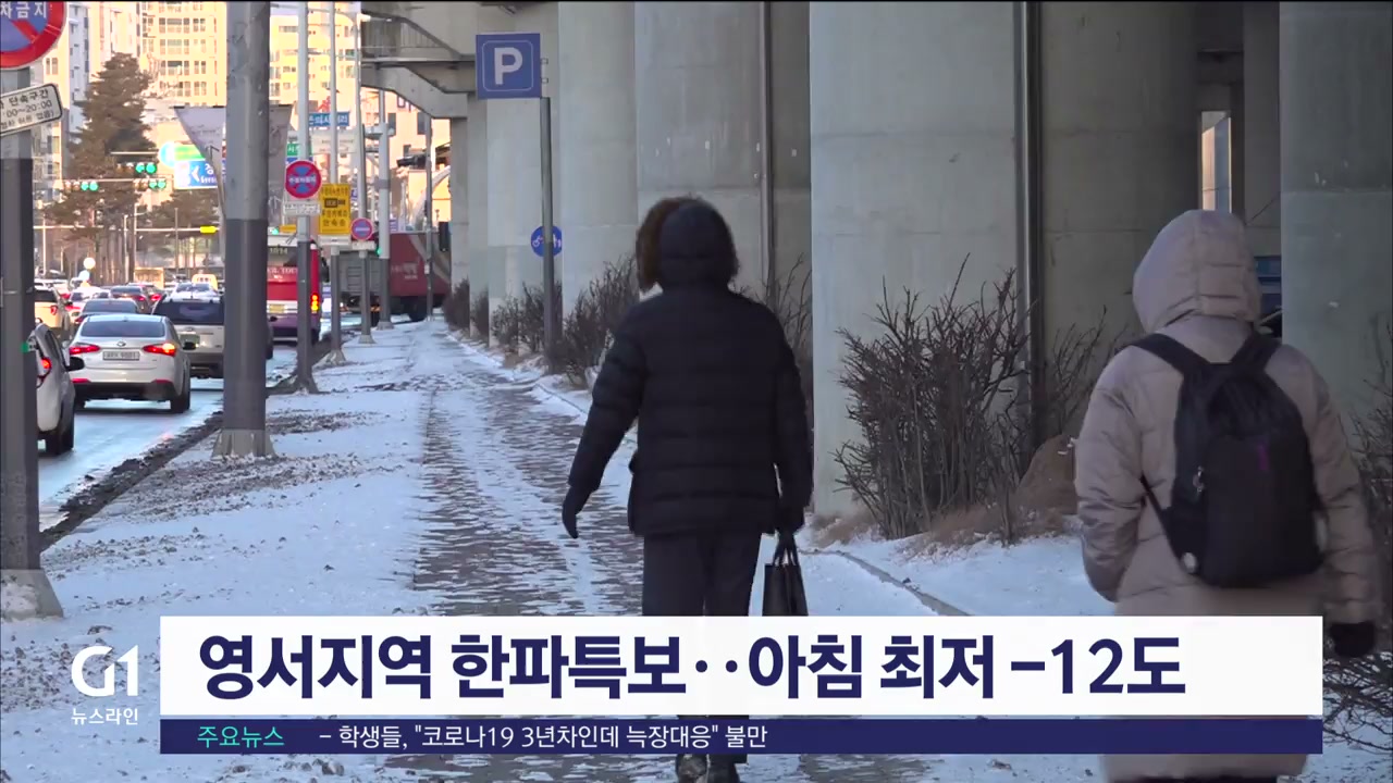 아침 최저기온은 영하 12도에서 영하 2도, 낮 최고기온은 영서지역이 영하 6도에서 영하 2도, 영동지역은 영하 1도에서 3도의 분포를 보이겠습니다.