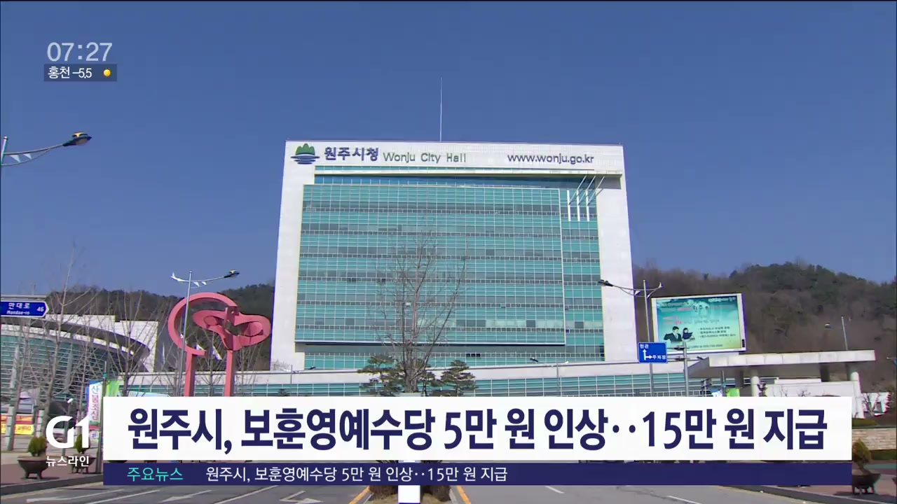 원주시, 보훈영예수당 5만원 인상..15만원 지급