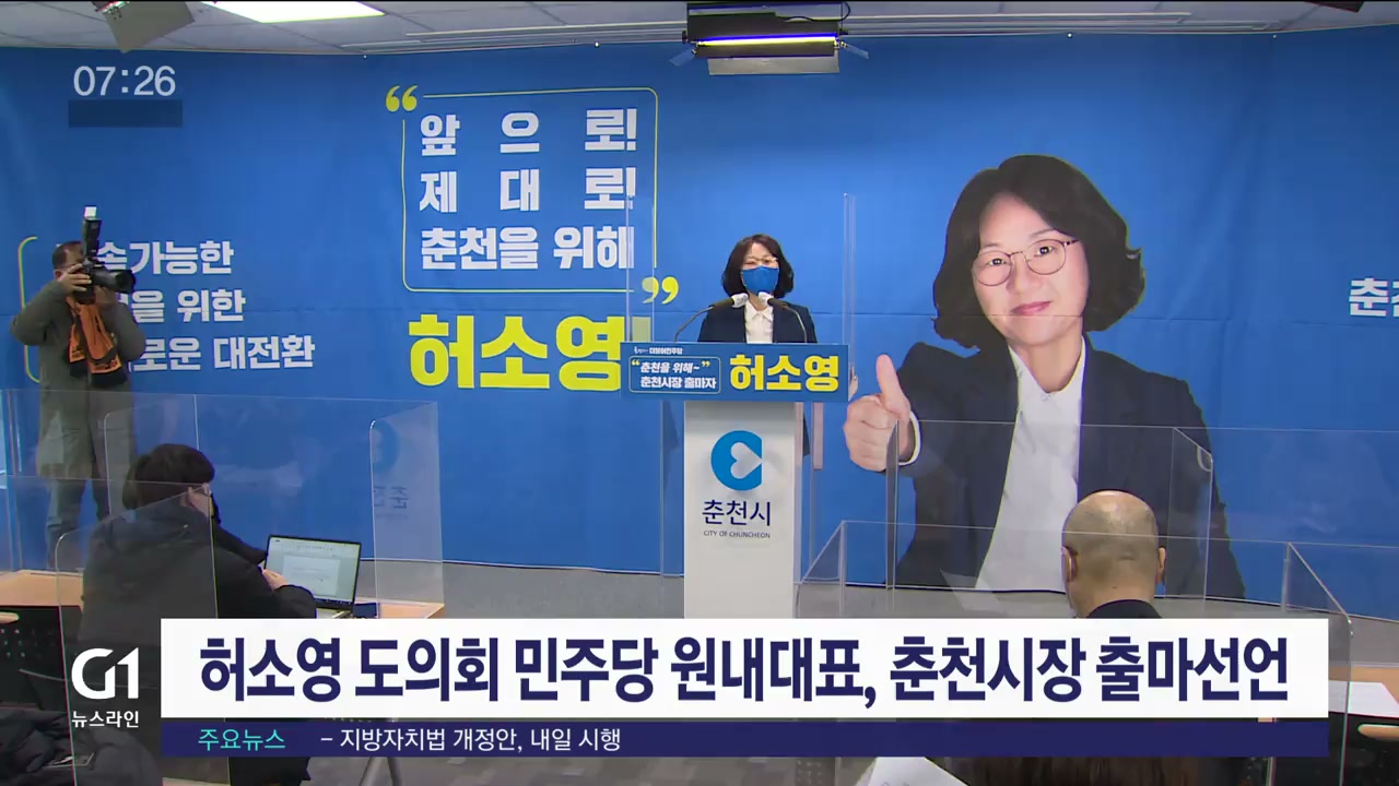 허소영 강원도의회 더불어민주당 원내 대표는 춘천시청에서 기자회견을 열고 "변화의 변방에 머물던 춘천을 변화의 중심에 서도록 만들겠다"며 춘천시장 출마를 선언했습니다.