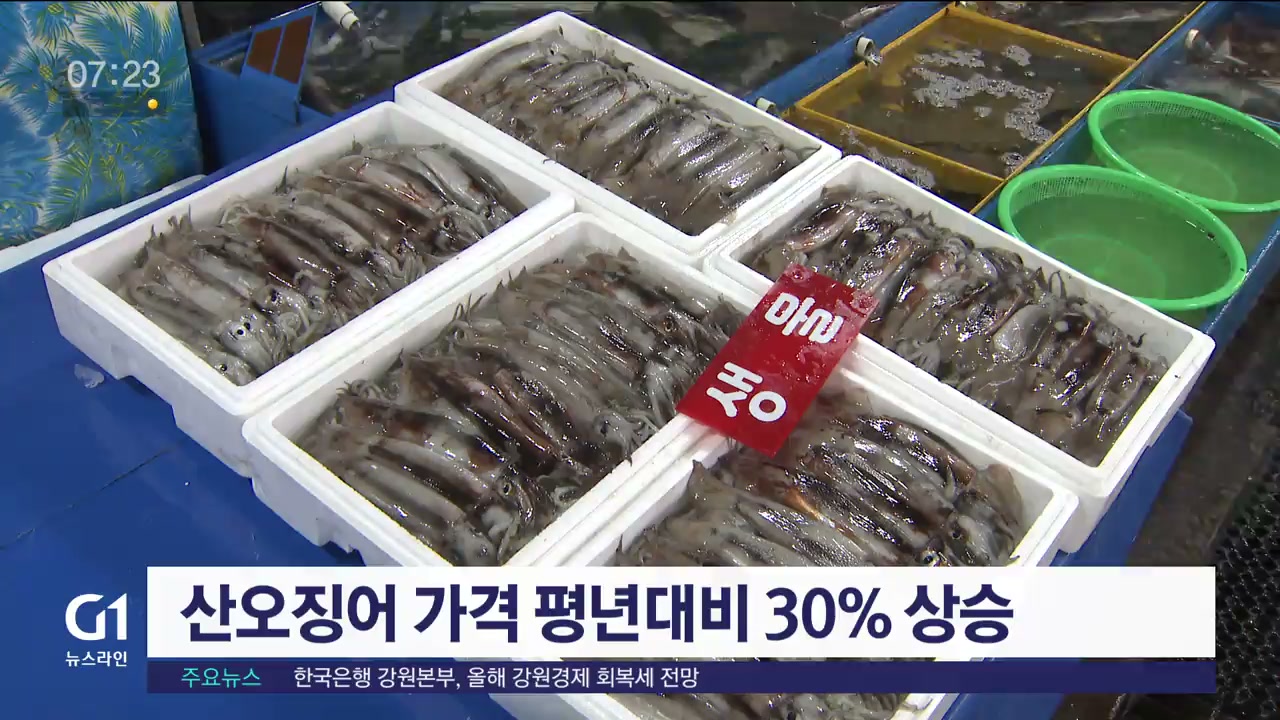 그나마 정치망 어선을 통해 크기가 작은 오징어가 잡히기는 하는데, 어획량이 크게 줄다보니 20마리당 가격은 15~18만원 사이로 평년 대비 30%까지 올랐습니다.