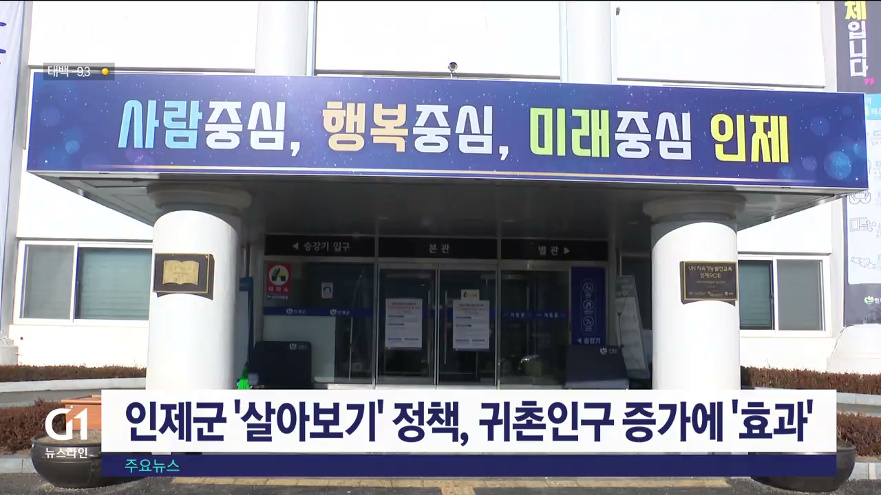 인제군 '살아보기'정책, 귀촌인구 증가로 이어져