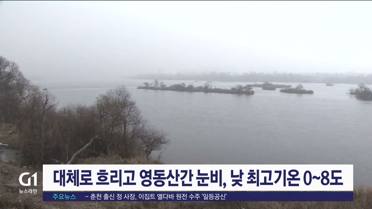 오늘 강원도는 대체로 흐린 가운데, 영동지역은 비 또는 눈이 내리겠습니다.