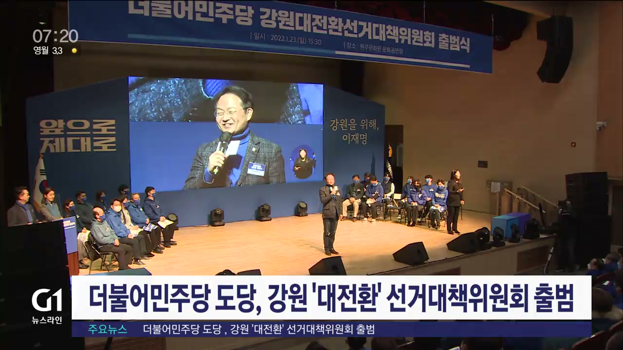 더불어민주당 강원도당이 오는 3월 대통령선거에서 압승을 다짐하는 강원 대전환 선거대책위원회를 출범했습니다.