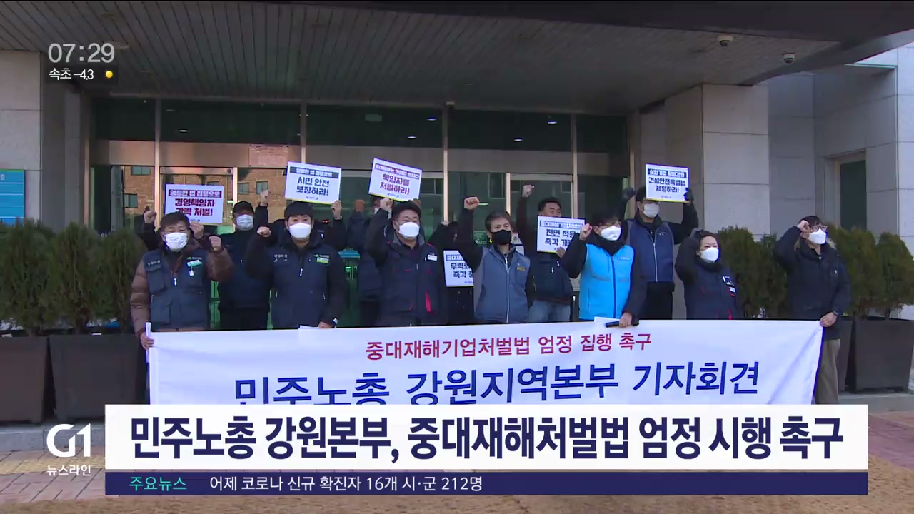 전국민주노동조합총연맹 강원지역본부는 중대재해처벌법 시행일을 맞아, 엄정한 법 집행을 촉구했습니다.