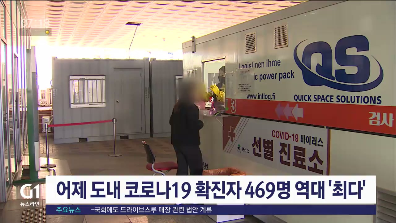 어제 도내 코로나19 확진자 469명 역대 '최다'