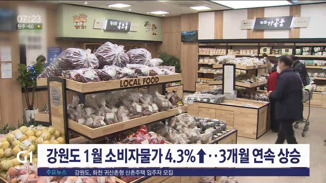 강원도 1월 소비자물가 4.3%↑‥3개월 연속 상승