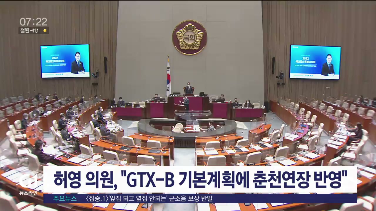 더불어민주당 허영 의원은 어제(8일), 국회에서 열린 2022년도 제1회 추경안 정책질의에서 수도권 광역급행철도 GTX-B 노선의 춘천 연장 필요성을 다시 제기했습니다.