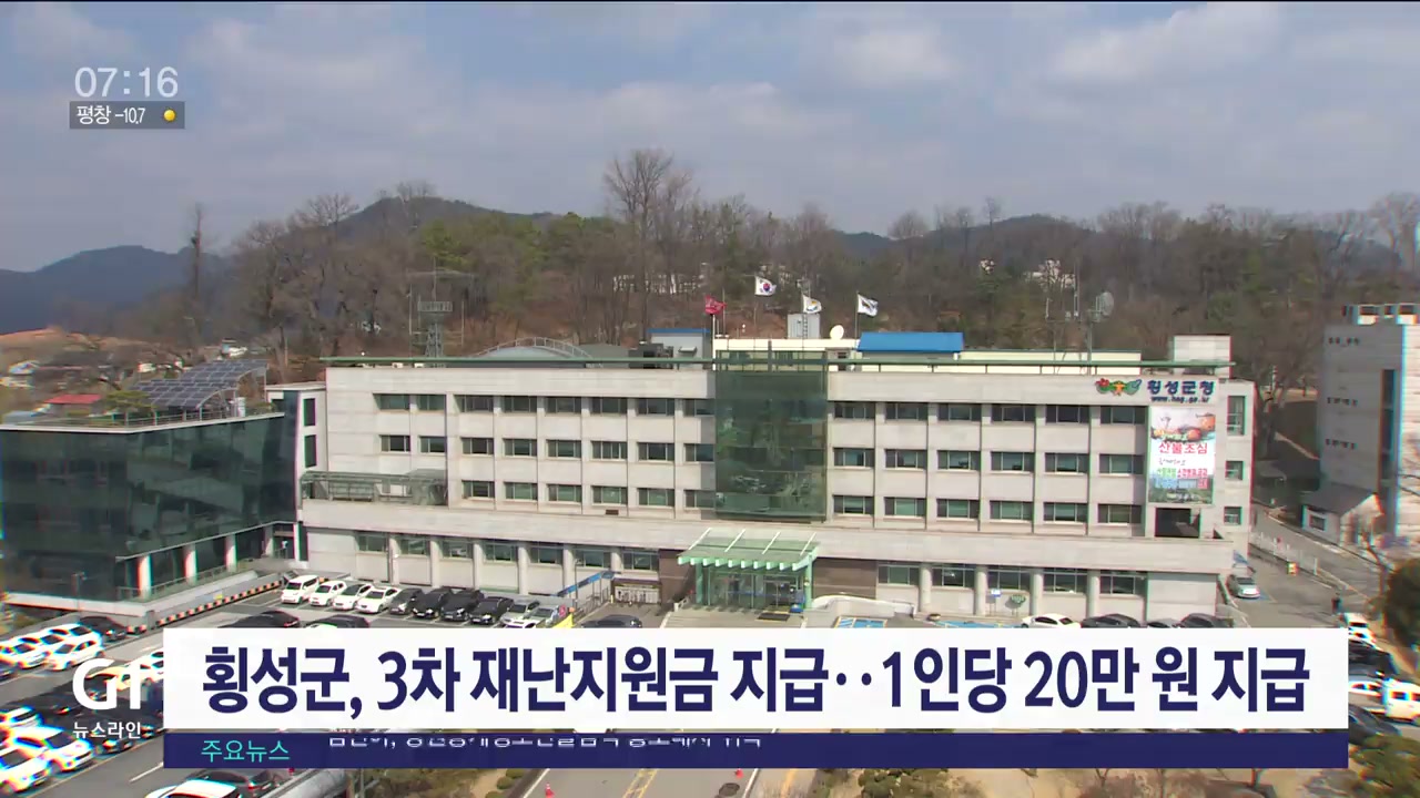 횡성군, 3차 재난지원금 지급..1인당 20만 원 지급