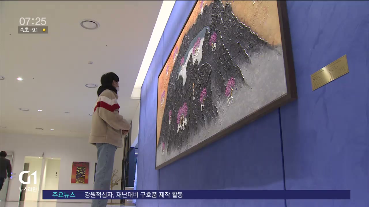 뉴욕 유엔본부대표부에 있는 백두산 천지 작품을 국내에서도 볼 수 있게 된 겁니다.