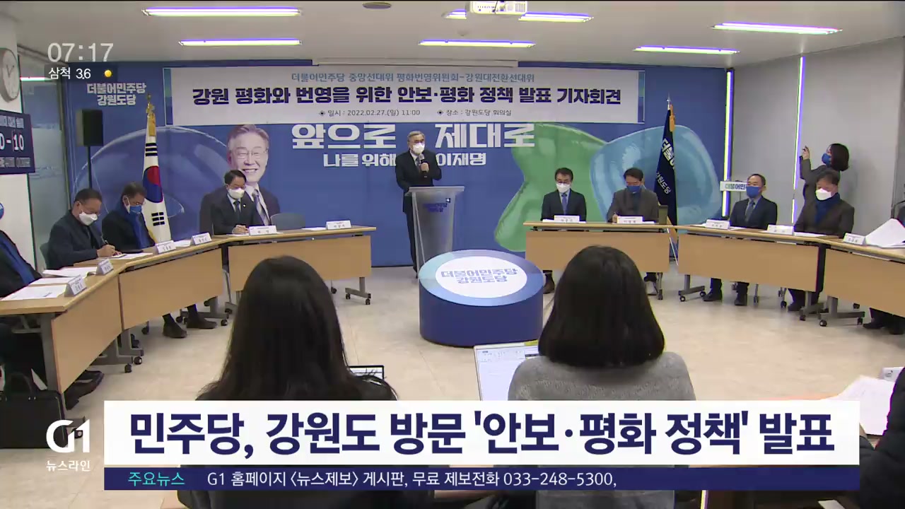 더불어민주당 선대위 평화번영위원회와 강원대전환선대위는 어제(27일) 강원도당에서 기자회견을 열고 이재명 후보의 안보·평화 정책을 발표했습니다.