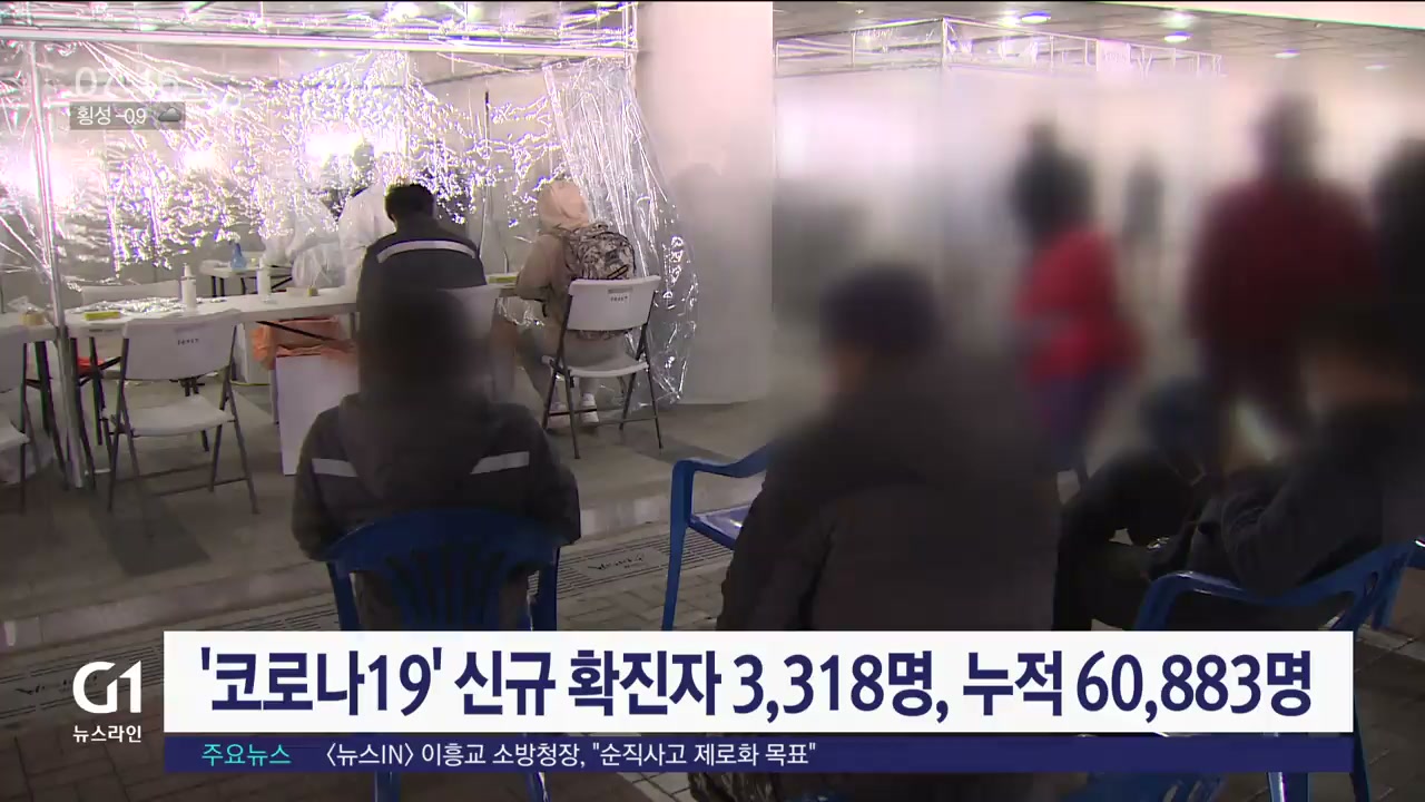 '코로나19' 신규 확진자 3,318명, 누적 60,883명