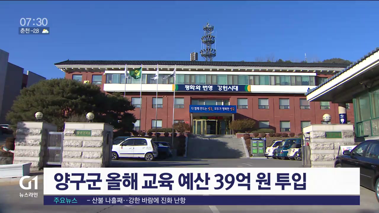 양구군이 학생 학습 경쟁력 강화와 향토 인재 육성을 위해 올해 교육 분야에 39억 원을 투입합니다.