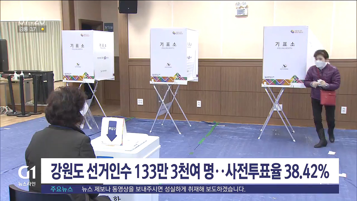 강원도에서는 선거인수 133만 3천여 명 중, 51만 2천여 명, 38.42%가 사전투표를 마쳤습니다.