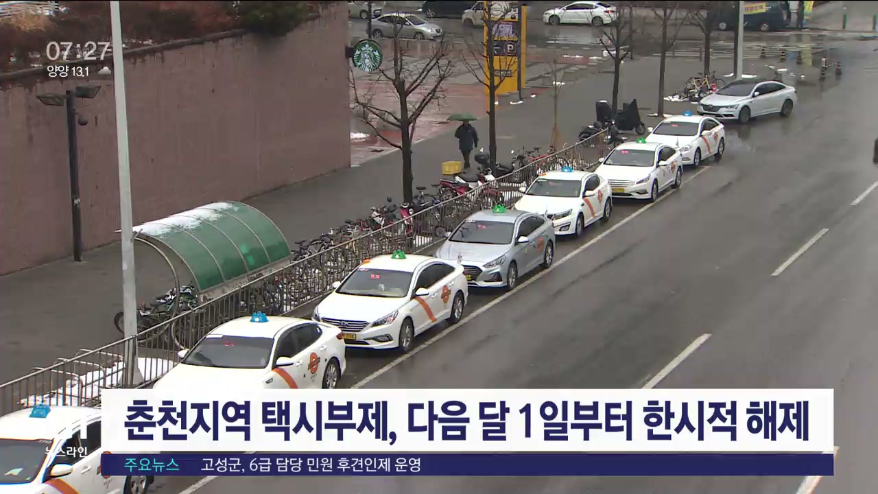 춘천시는 다음달 1일부터 내년 10월 말까지 지역내 개인·일반택시 3부제 운영을 한시적으로 전면 해제한다고 밝혔습니다.
