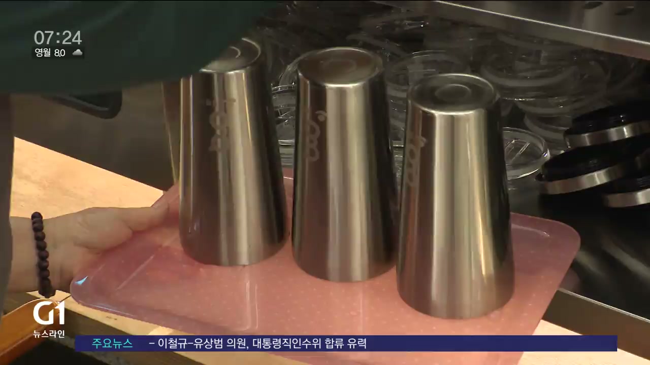 강릉시가 청사 내 카페에서 재사용이 가능한 스테인리스 컵을 쓰도록 해, 생활쓰레기를 줄이는 좋은 사례가 될 지 주목됩니다.