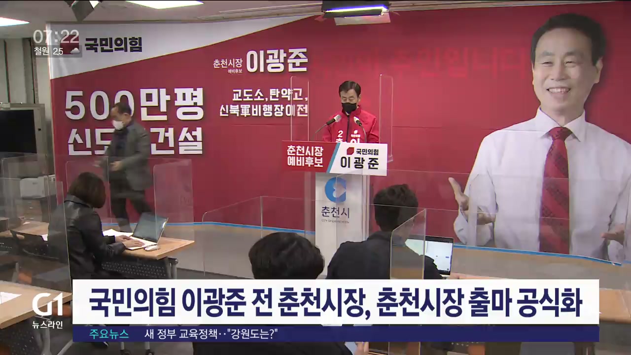 국민의힘 이광준 전 춘천시장은 어제(14일) 시청 브리핑룸에서 기자회견을 열고, 오는 6월 지방선거 춘천시장 출마를 공식화했습니다.
