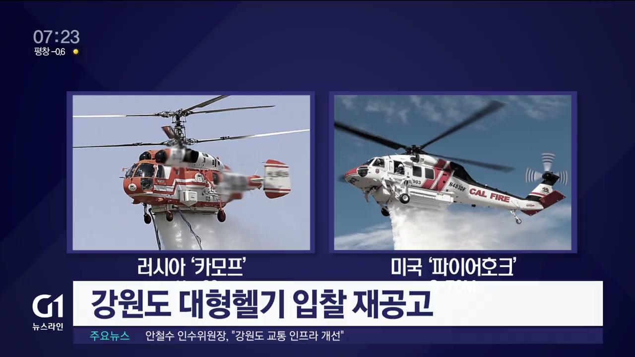 강원도는 지난달 미국 헬기업체 1곳만 입찰에 참여해 유찰됐던 270억 원 상당의 대형헬기 입찰을 다시 진행한다고 밝혔습니다.