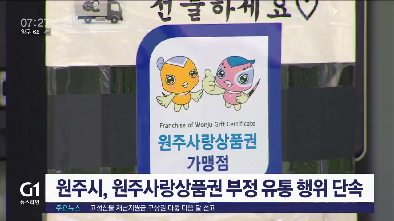 원주시는 이달 말까지 원주사랑상품권 가맹점을 대상으로, 지류 상품권의 환전과 결제현황 자료를 점검하고, 부정 유통.거래 행위를 집중 단속한다고 밝혔습니다.