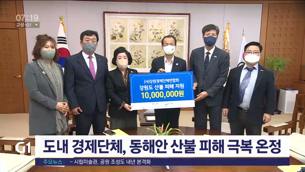 강원도에 따르면, 지난 17일 강원도 경제단체연합회와 강원여성경영인협회가 동해안 산불 피해로 실의에 빠진 주민들을 위해 써달라며, 각각 성금 천만 원을 기탁했습니다.