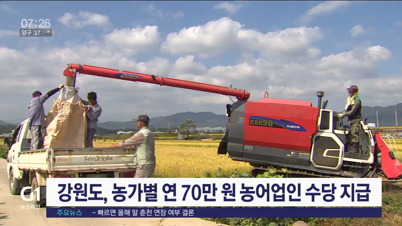 강원도, 농가별 연 70만 원 농어업인 수당 지급