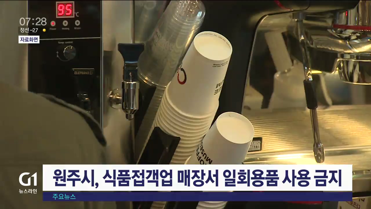 앞으로 원주 지역에서 식품접객업 매장 내 일회용품 사용이 전면 금지됩니다.