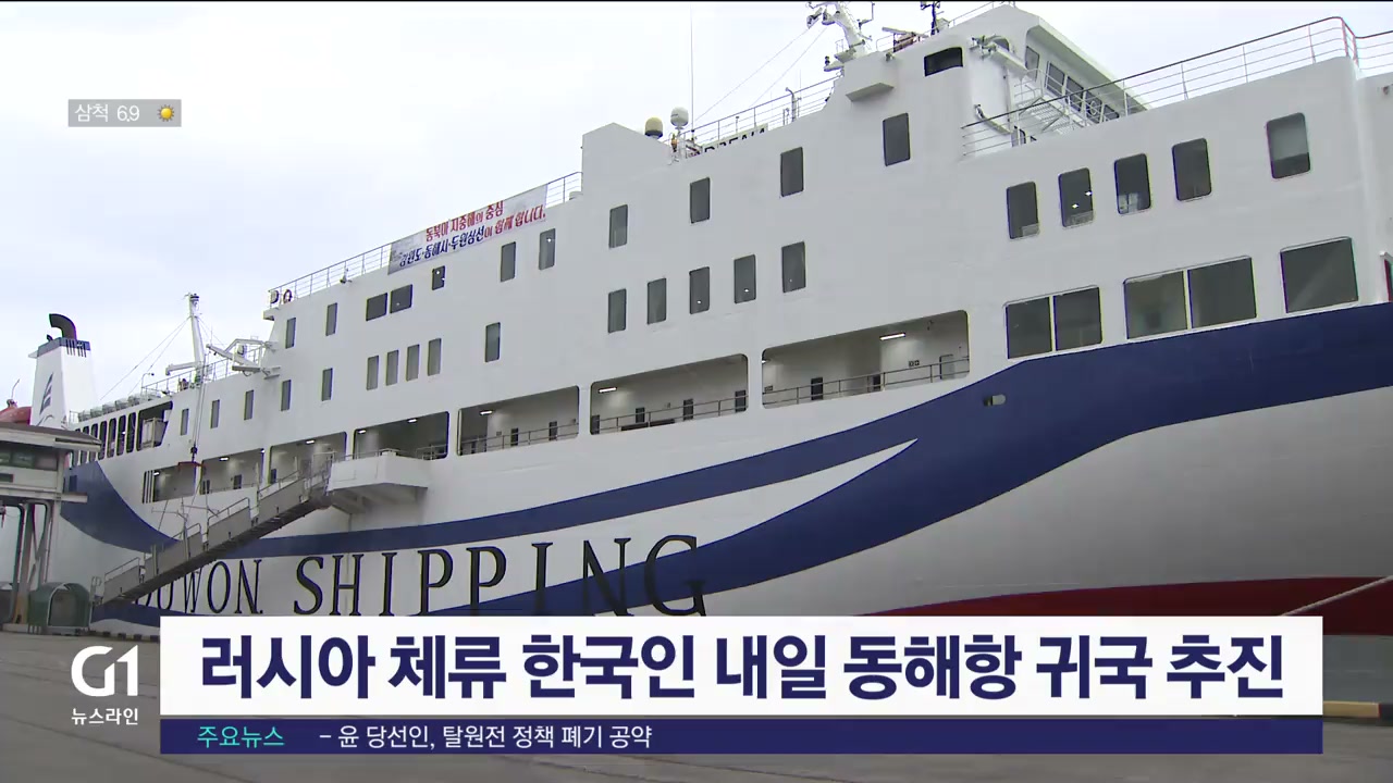 북방물류산업진흥원과 동해시는 내일(30일) 블라디보스토크를 출발하는 이스턴드림호에 귀국을 희망하는 러시아 체류 한국인들의 탑승을 허가하는 방향을 검토하고 있다고 밝혔습니다.