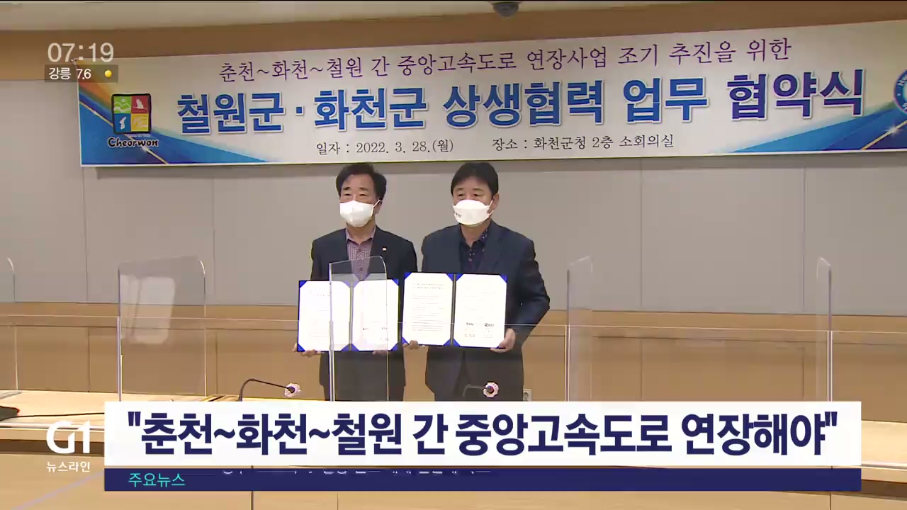화천군과 철원군이 정부의 제2차 고속도로 건설계획 신규 신설사업에 포함된 중앙고속도로 연장 조기 추진을 위한 업무협약을 체결했습니다.