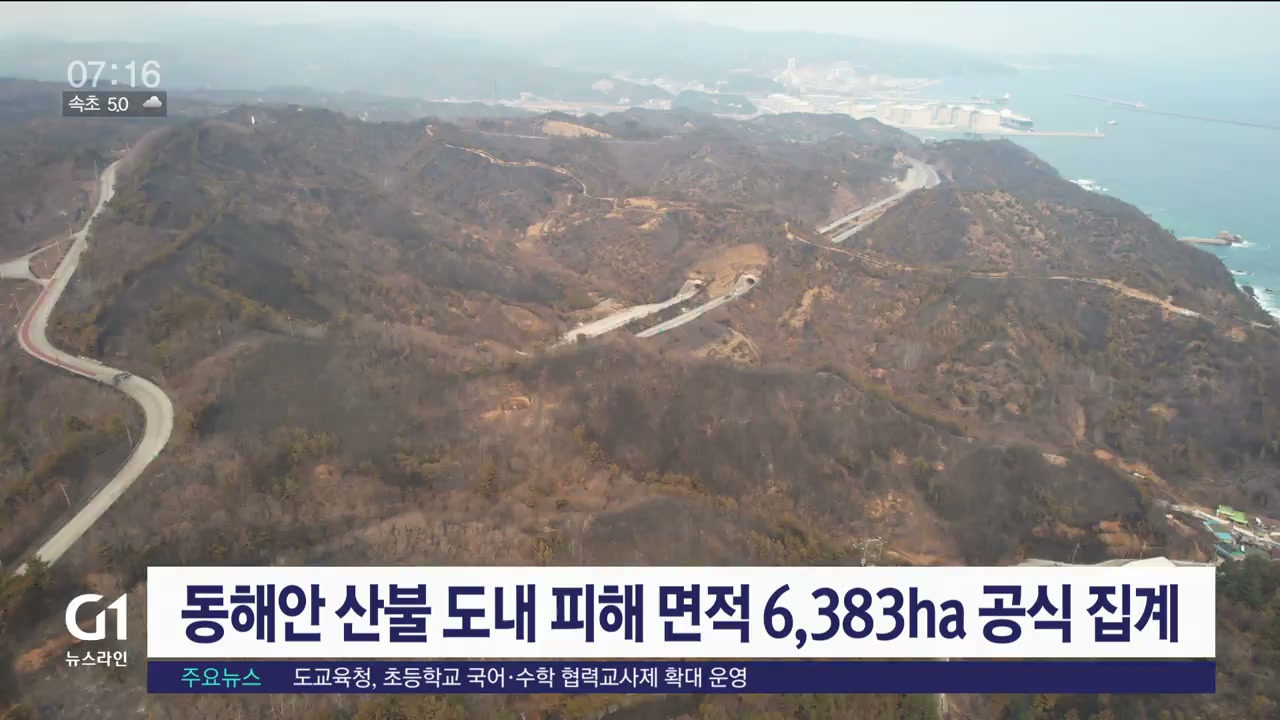 동해안 산불 도내 피해 면적 6,383ha 공식 집계