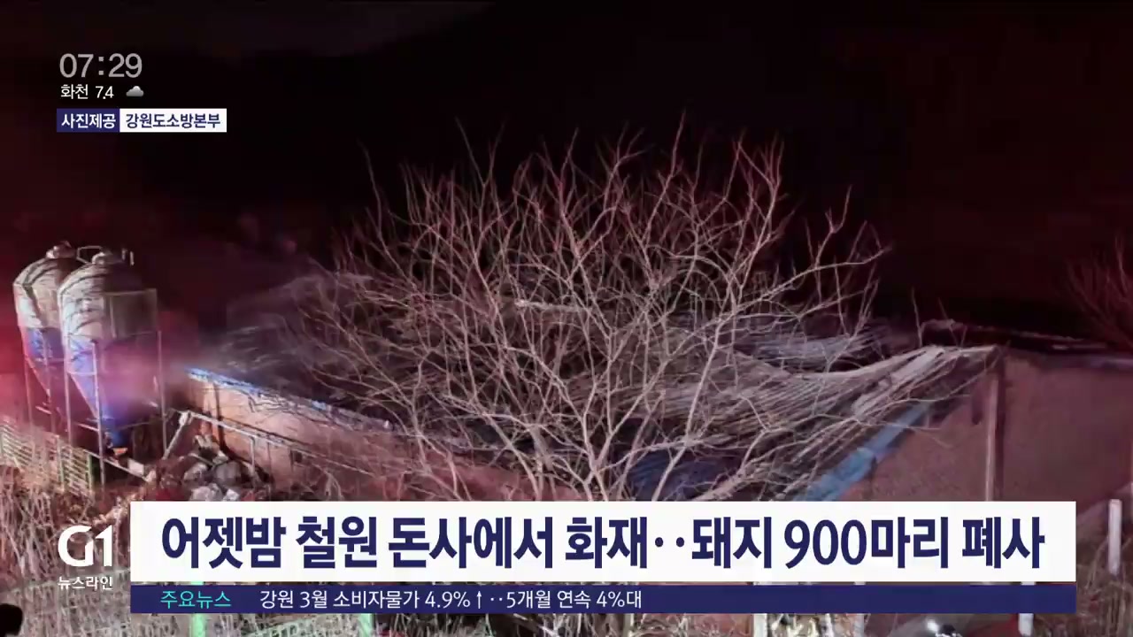 어젯밤 철원 돈사에서 화재..돼지 900마리 폐사