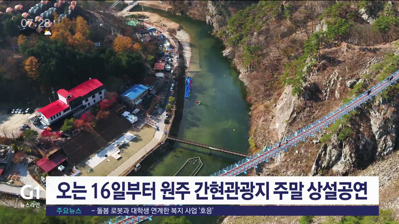 원주의 대표 관광 명소인 '간현관광지'에서 오는 16일부터 야외 전통 상설공연이 열립니다.
