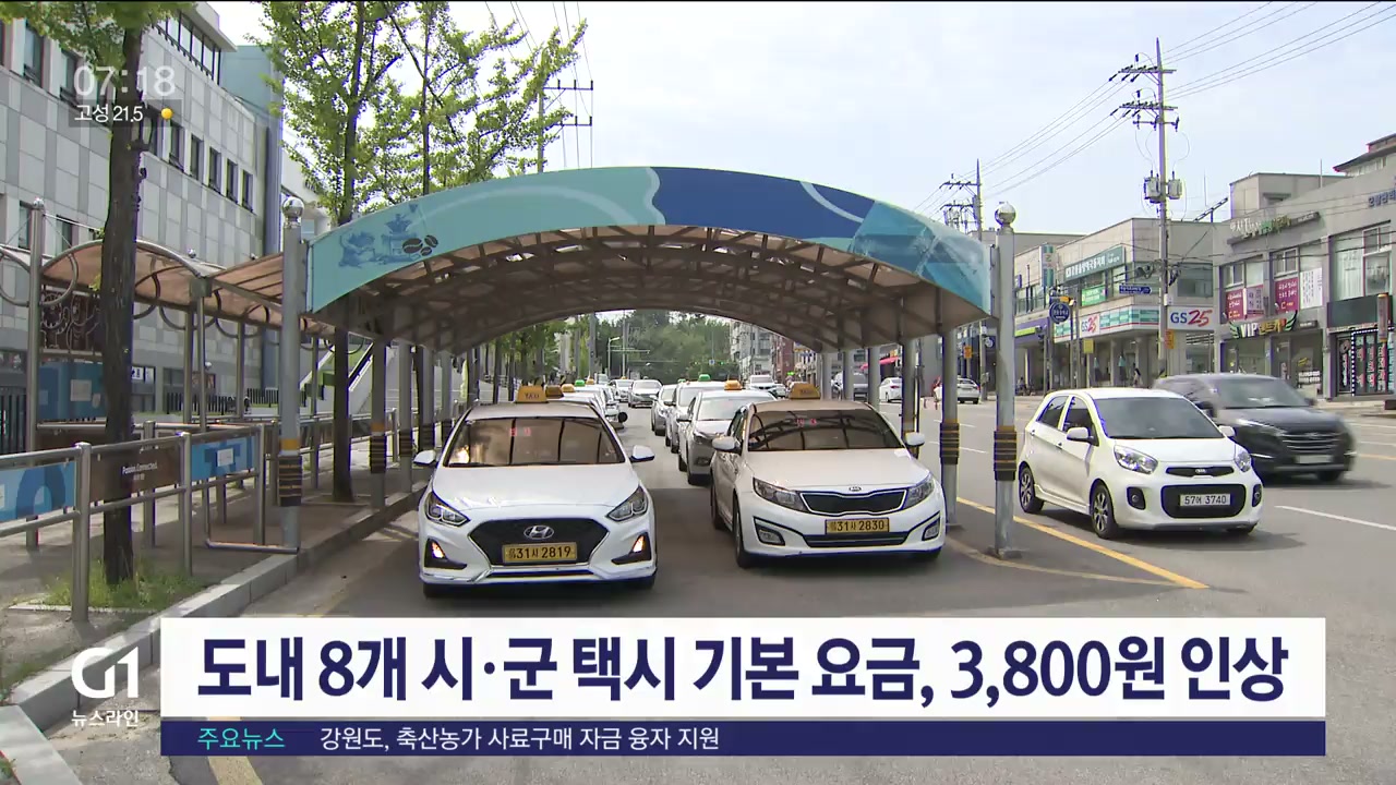 도내 8개 시·군 택시 기본 요금, 3,800원 인상