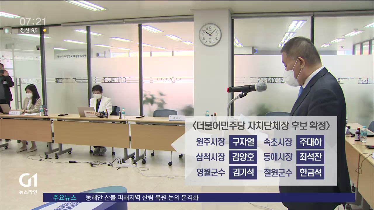 더불어민주당 강원도당이 원주와 속초 등 6개 지역에 대한 경선을 끝내고 후보를 공식 확정했습니다.