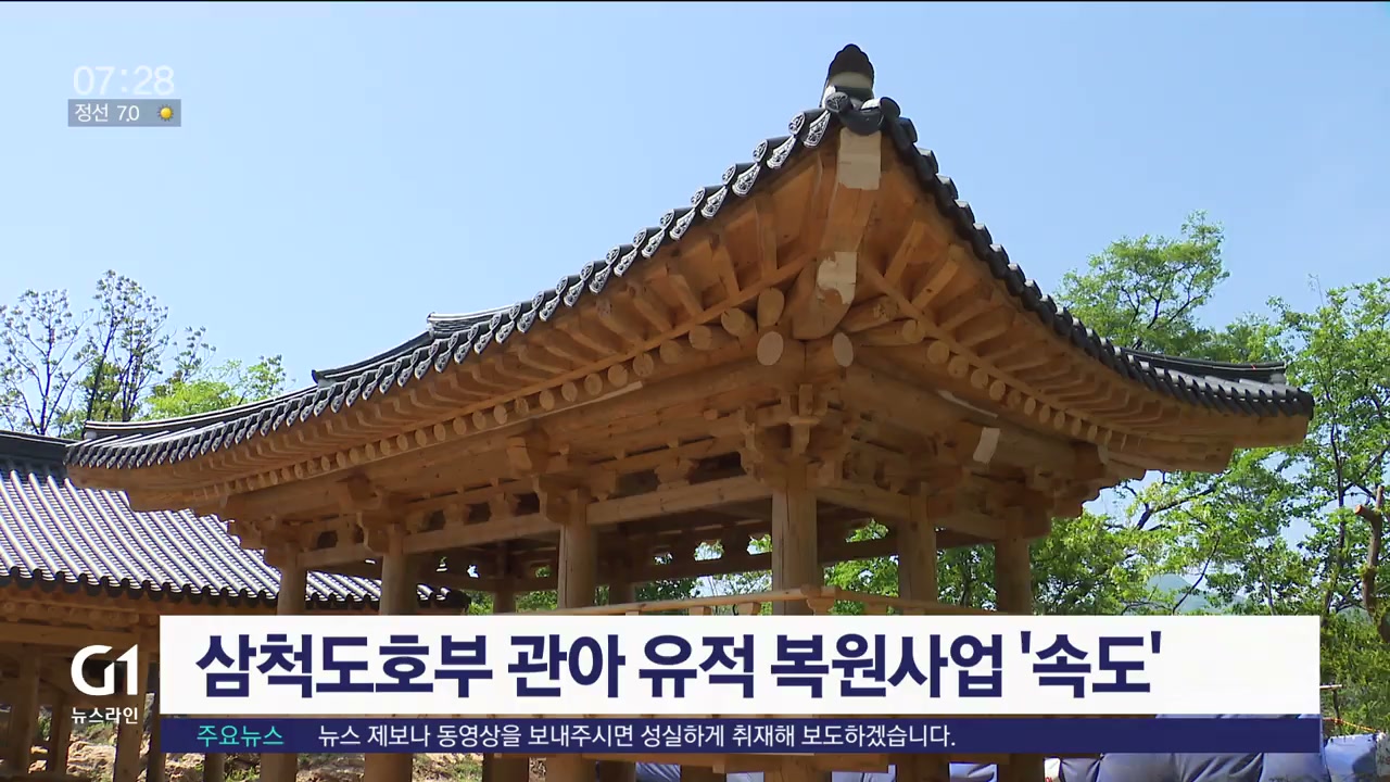 삼척시는 사업비 70억 원을 들여 지난해부터 추진 중인 도호부 관아지 복원사업이 현재 60%의 공정률로 내년까지 복원을 완료할 계획이라고 밝혔습니다.