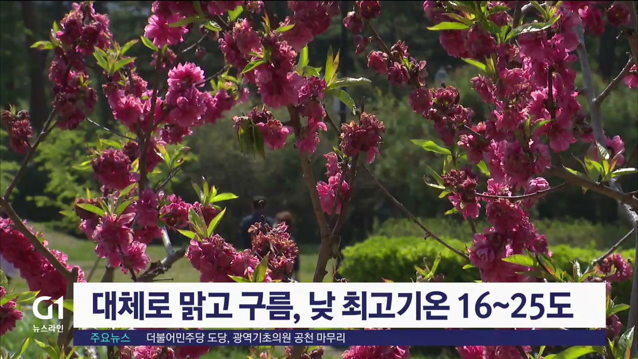 대체로 맑고 구름, 낮 최고기온 16~25도