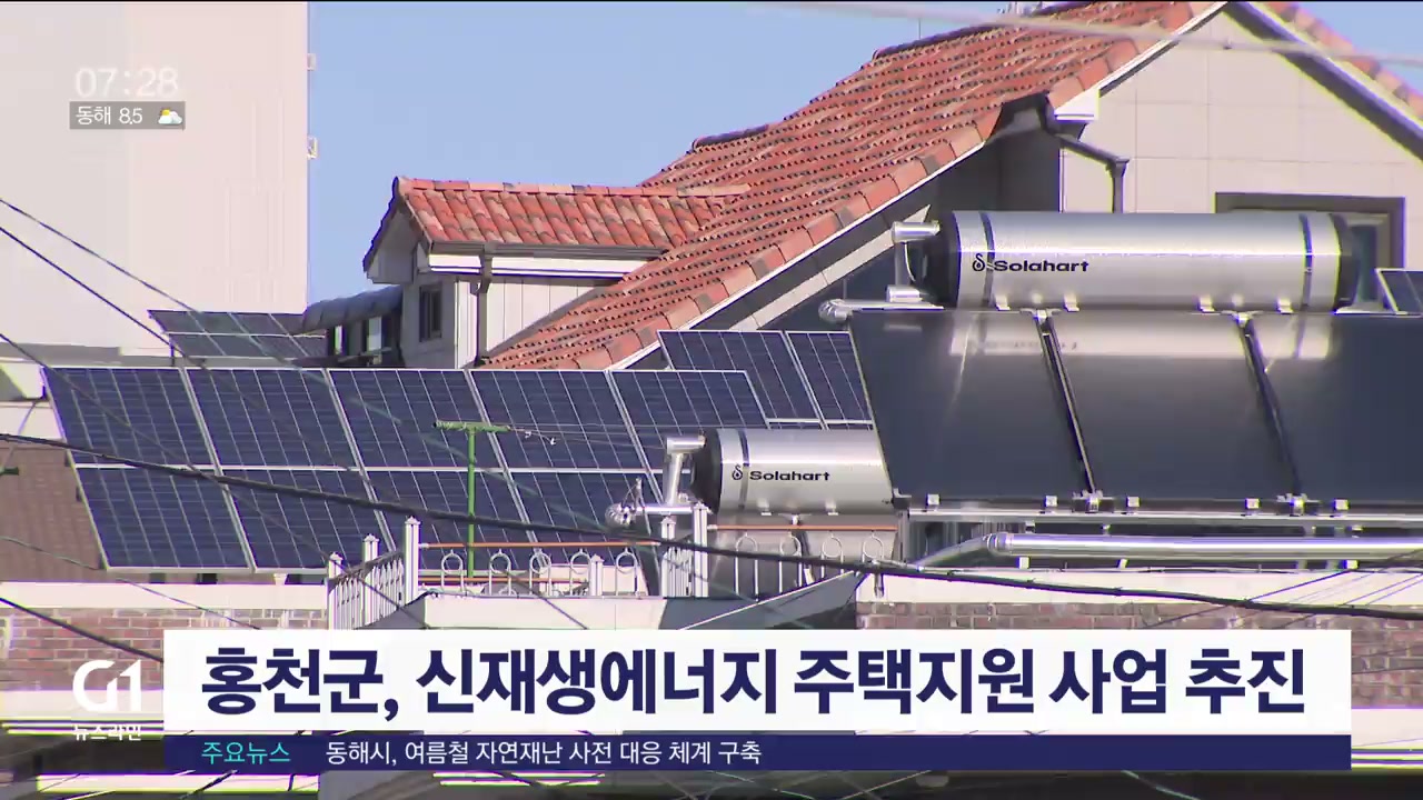 홍천군은 사업비 2억 5,900만 원을 들여, 주민이 태양광이나 지열 등 신재생에너지를 주택에 설치할 경우 설치 비용의 일부를 지방비로 지원합니다.