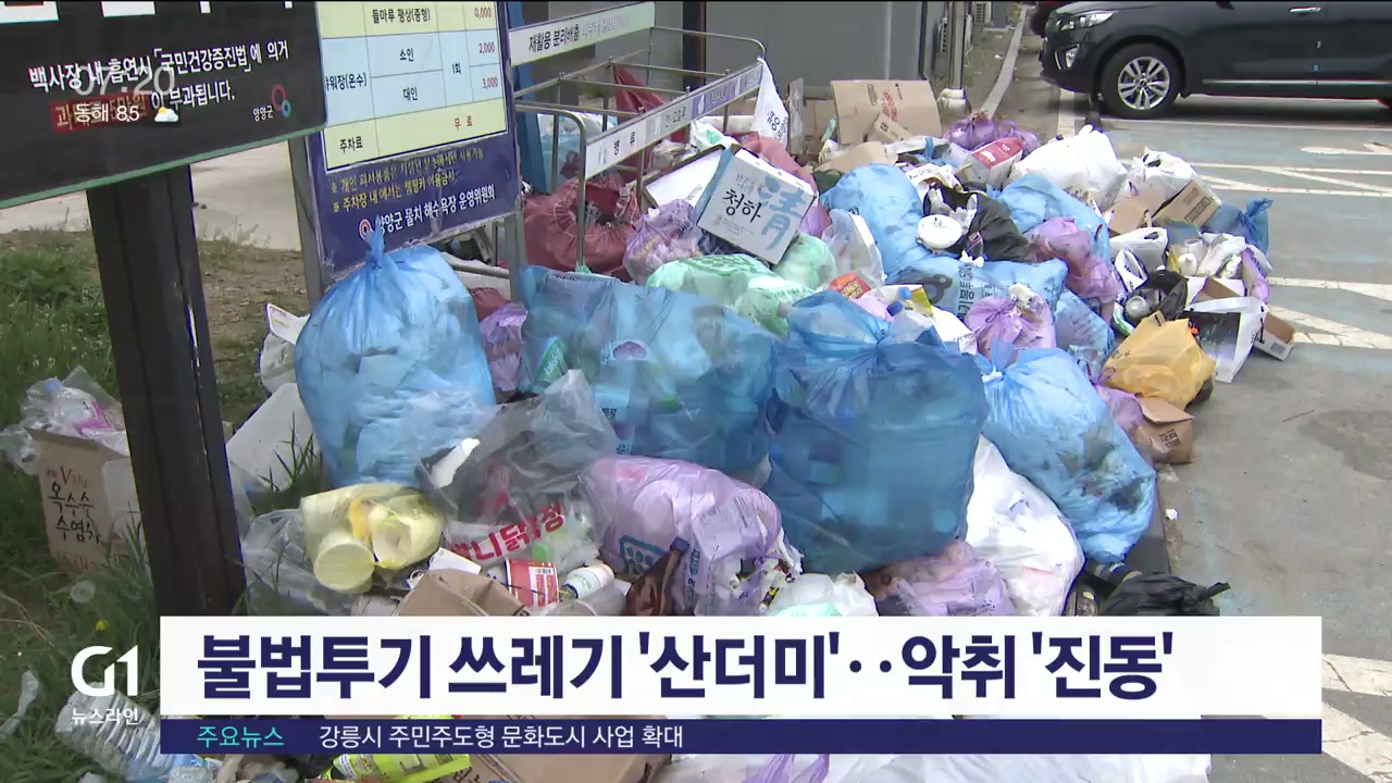징검다리 황금연휴 동안 분리수거는 커녕 종량제 봉투도 사용 안한 생활 쓰레기가 음식물 쓰레기와 뒤엉켜 악취까지 진동합니다.